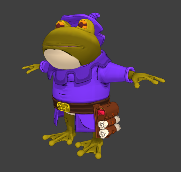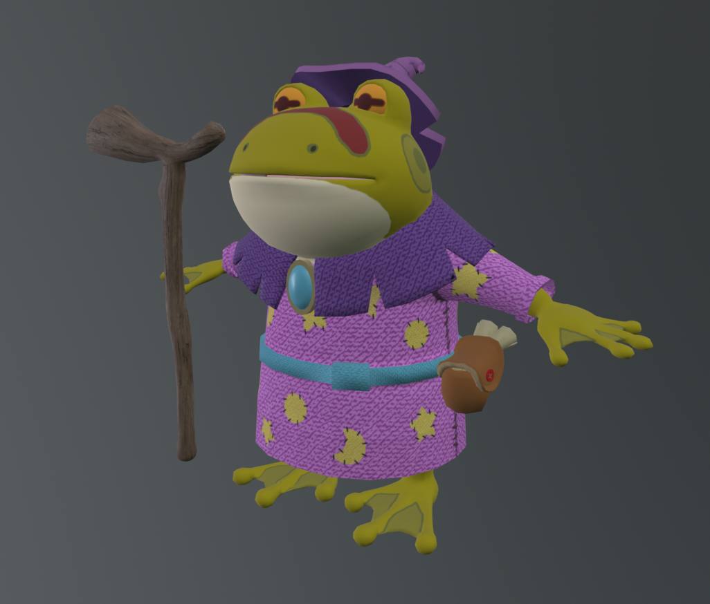 While looking for a style for the game that I can realistically achieve I always quite enjoyed the simplicity of cell shaded graphics. A couple of old classics that come to mind would me Zelda Wind Waker and Tales of Symphonia. With that style in mind I wanted to make characters that had a middle ground between complicated and simple. With that being said I would like to introduce you to our first character, Rosie the Wizard Frog (or Toad, I keep jumping between the two).